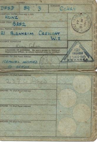 Carteira de identidade inglesa de Heinz Cohen - Registro Nacional