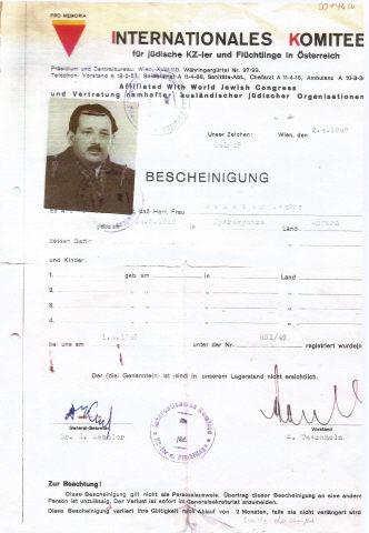 Cópia de certidão de Afiliação de Nikolaus Demeter ao Congresso Judaico Internacional em Viena