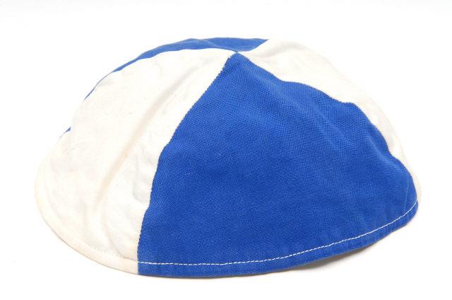 A quipá (do hebraico "cobertura") é o “chapéu” (solidéu) utilizado pelos judeus tanto como símbolo da religião quanto como símbolo do reconhecimento da superioridade divina sobre o ser humano, sendo também símbolo de humildade perante o Criador e de submissão à sua vontade. Quipá de tecido de algodão com segmentos de tecido branco e azul.