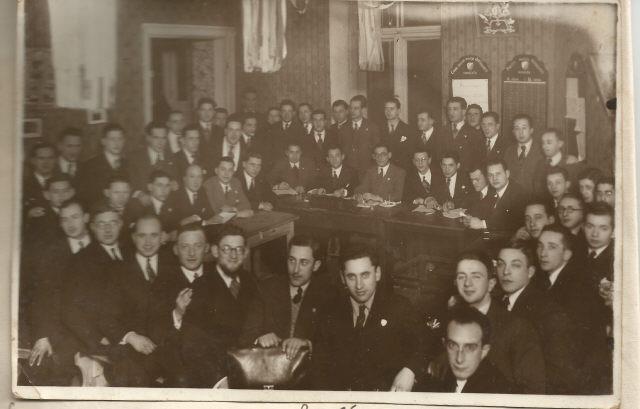 Foto 1º Congresso Sionista na Letônia (Fotografia em preto e branco com diversos homens de terno e gravata sentador ao redor de uma sala)