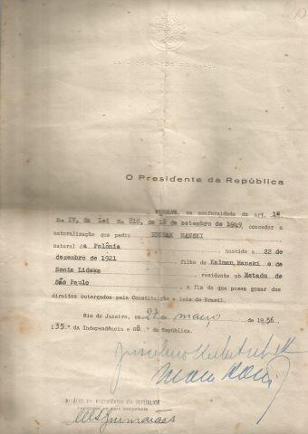 Concessão de naturalização brasileira de Icchak Manski