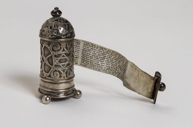 A Meguilá é lida durante a festa de Purim e no seu pergaminho está descrita a história da Rainha Esther na Pérsia, a história da festa judaica de Purim que conta tentativa de extermínio do povo judeu na Pérsia antiga. Meguilá feita a mão por M. Ende. Ao lado da porta de um lado: Meguilat Esther e iutro lado Amalca.